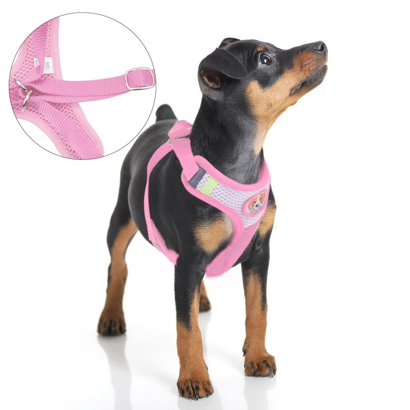 JCUGSBS Dog Harness for Small Dogs with Lead, Step-in Harness Made of Air Mesh, Anti-Pull Reflective Breathable Chest Harness, Puppy Harness for Small Dogs, Cat Harness, Pink, S