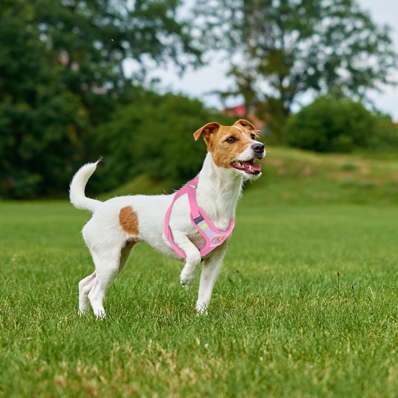 WEATHERPROOF Our close-fitting harness is weatherproof and ensures that rain or snow won't stop you and your pet. The soft mesh fabric on the chest and back offers your dog a high level of comfort and is suitable for outdoor use thanks to its durability.