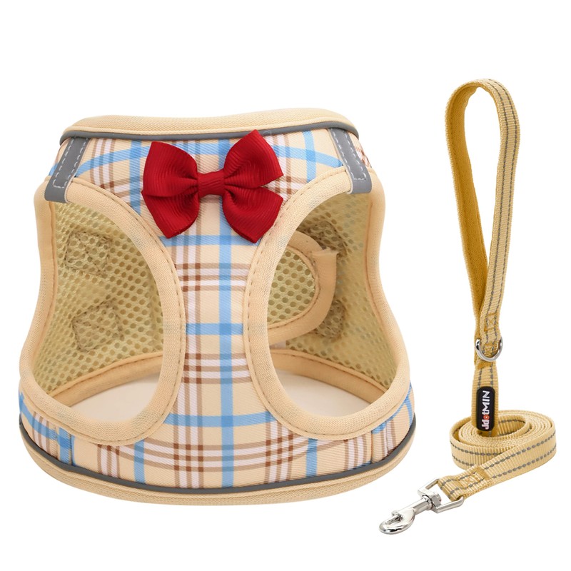 JdotMIN Plaid Dog Harness and Leash Set, Extra Small to Small Dog and Cat Vest Harness No Pull, Escape Proof, for Walking Puppy and Kitten, for Travel and Car, Harnais Pour Chien (Yellow, XS)