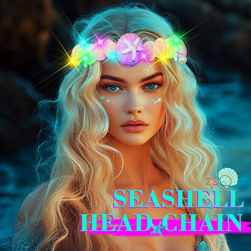 Shine bright or keep it subtle—our Light Up Shell Headband dazzles with or without its LED glow! Perfect for beach vibes, this Glow Seashell Headpiece features iridescent pearls and a radiant LED starfish centerpiece. Powered by 3 replaceable AG13 batteries (included), it ensures long-lasting magic. Ultra-lightweight and secure, its adjustable chain guarantees a snug fit for all-day comfort, whether paired with swimwear, sundresses, or evening gowns.