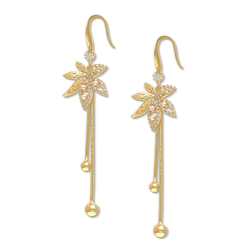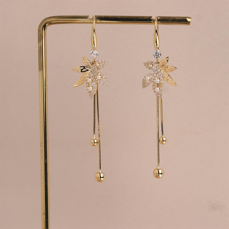 - Dazzling gold autumn leaf fish hook tassel earrings, with delicate eye-catching design and remarkable craftsmanship, dangling snake chains ended with balls, rhinestones are the perfect addition to any outfit.