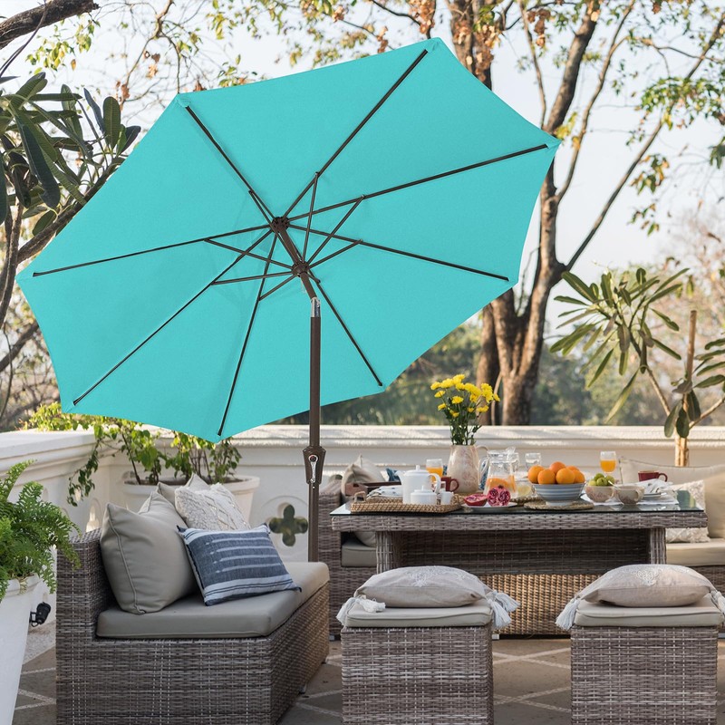 JEAREY 9FT Outdoor Patio Umbrella Outdoor Table Umbrella with Push Button Tilt and Crank, Market Umbrella 8 Sturdy Ribs UV Protection Waterproof for Garden, Deck, Backyard, Pool (Peacock Blue)