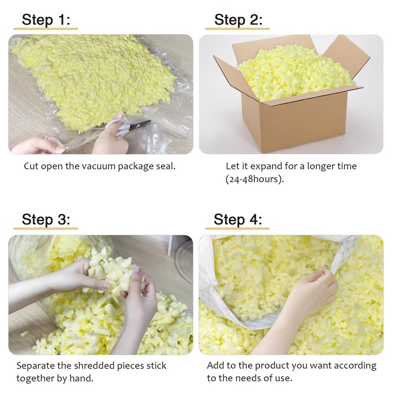 • Multi Scenario Applications:Adaptable memory foam suits diverse needs: bean bag filling, pet beds, ergonomic cushions, or sofa pillow inserts for stress relief. Revitalize old furniture or customize density for sturdy meditation mats or cloud-soft infant beds. Wherever comfort is needed, we deliver.