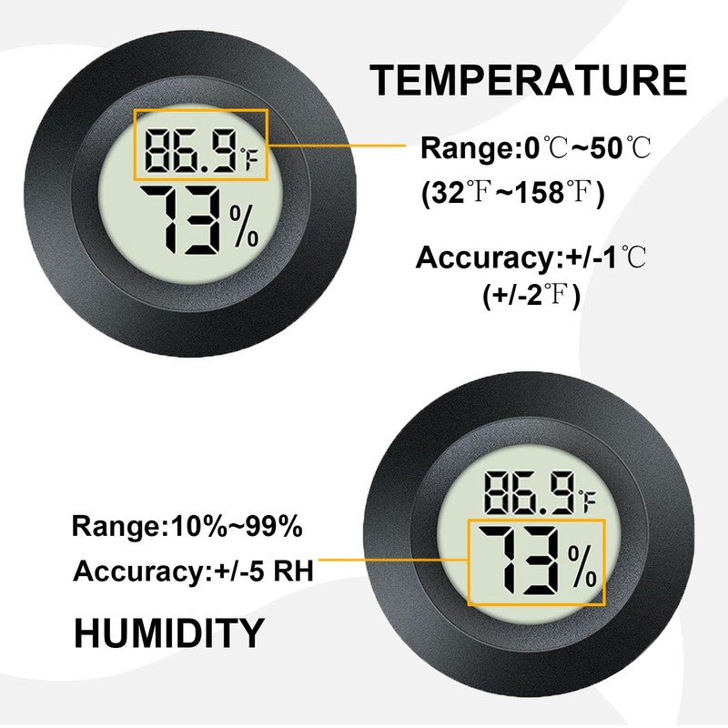 - 2-Fahrenheit/CelsiusThe Thermo-hygrometer can achieve the mutual conversion between Fahrenheit (F) and Celsius (C). Temperature measurement accuracy: 1F, Humidity measurement accuracy: 5%RH.