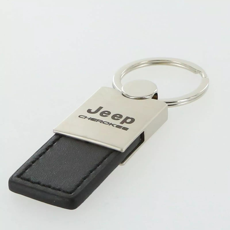 Jeep Cherokee Leather Key Ring (Black)