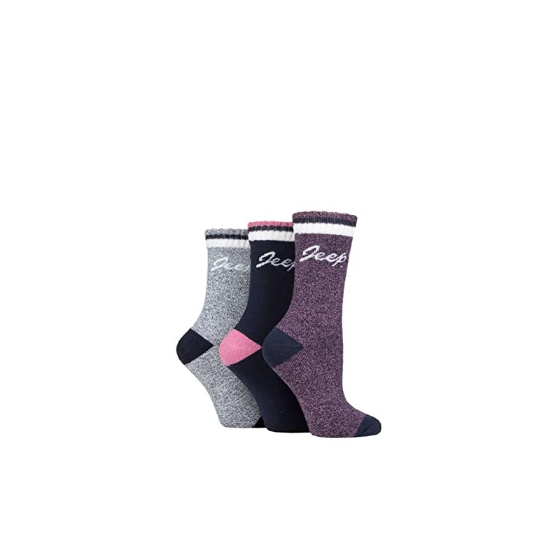 Jeep Ladies Performance Full Cushion Boot Socks Pack of 3 Navy/Rose/Cream 4-8