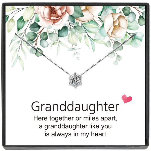 JeeweLife Granddaughter Necklace, Sterling Silver Necklace, Granddaughter Birthday Gift, Wedding Gift for Granddaughter