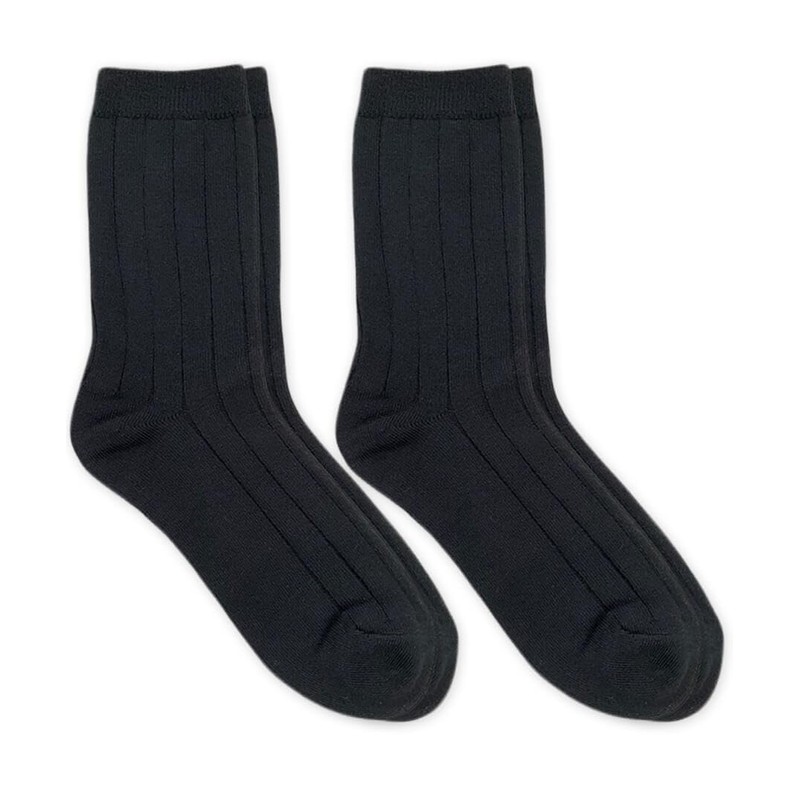 - Two pair pack of ribbed crew socks that are perfect for dress shoes, school, holidays, and everyday