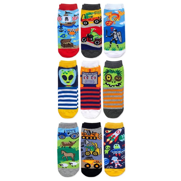 Jefferies Socks Boys Dinosaur Pirate Robot Alien Zombie Pattern Crew Socks 9 Pair Pack (X-Small, Multi 2)
