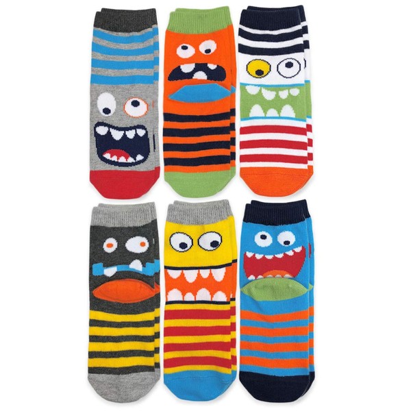 Jefferies Socks Little Boy's Monster Pattern Crew Socks 6 Pair Pack Sockshosiery, Multi, Small