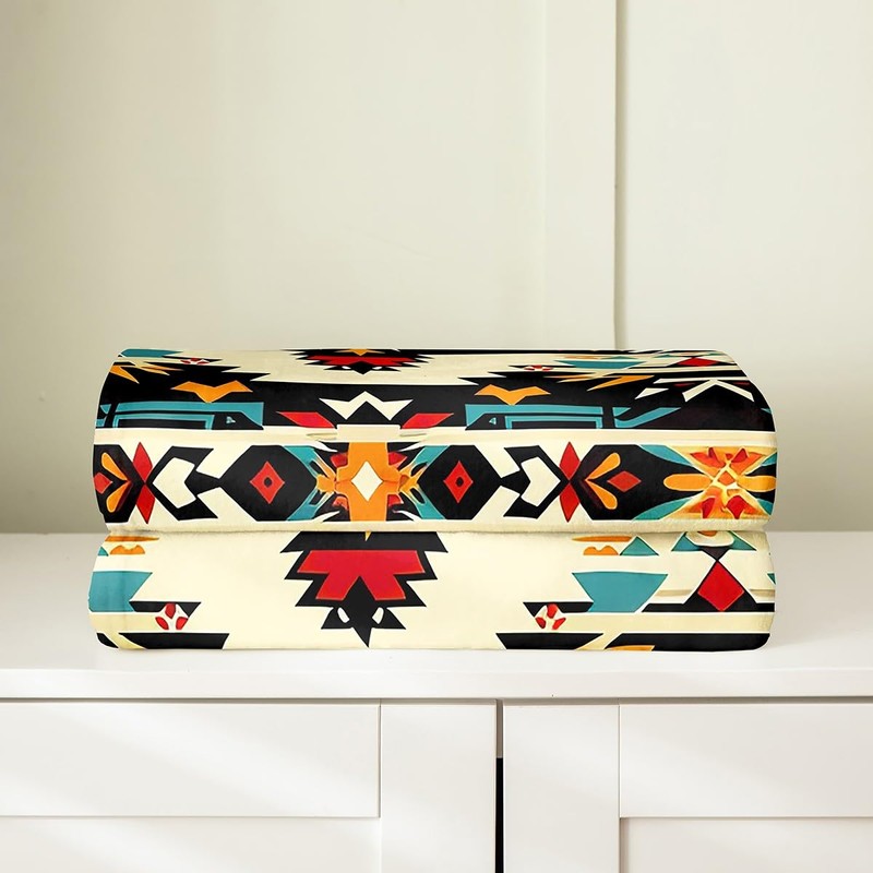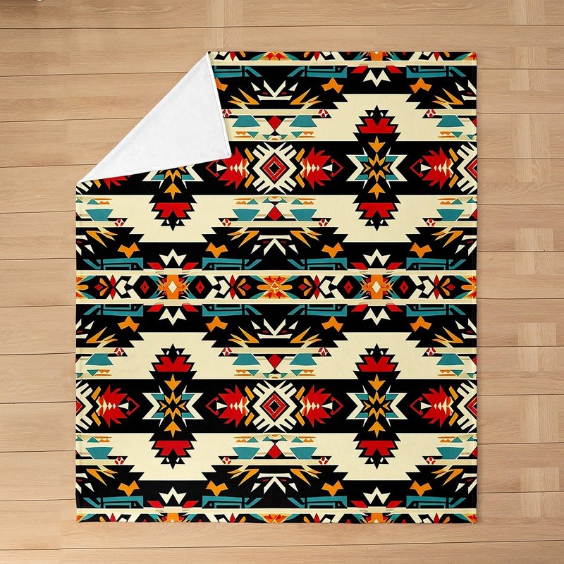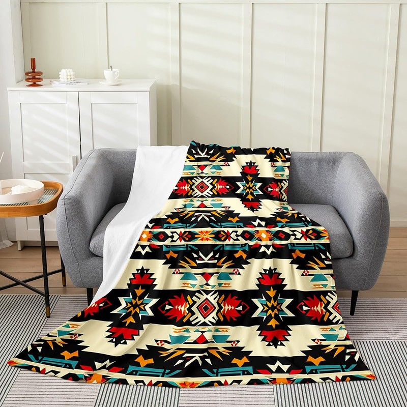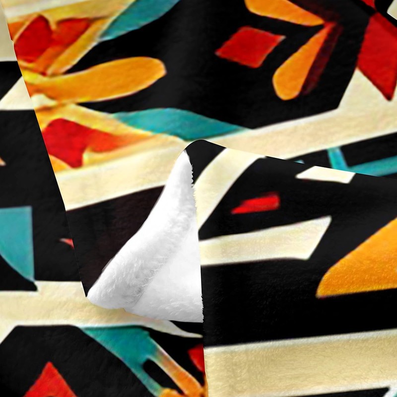 jejeloiu Black Southwestern Fuzzy Blanket Throw 50"x60" Geometric Flannel Fleece Throw Blanket Tribal Native American Indian Design Vinatge Bed Blanket Exotic Style Stripe Line Plush Blanket