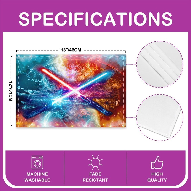 jejeloiu Lightsaber Placemats Set of 4 12"x18" Kids Water and Fire Print Placemats for Dining Table Indoor Outdoor Kitchen Red Blue Table Mats Placemat Decor Table Place Mats Kitchen Dining Table