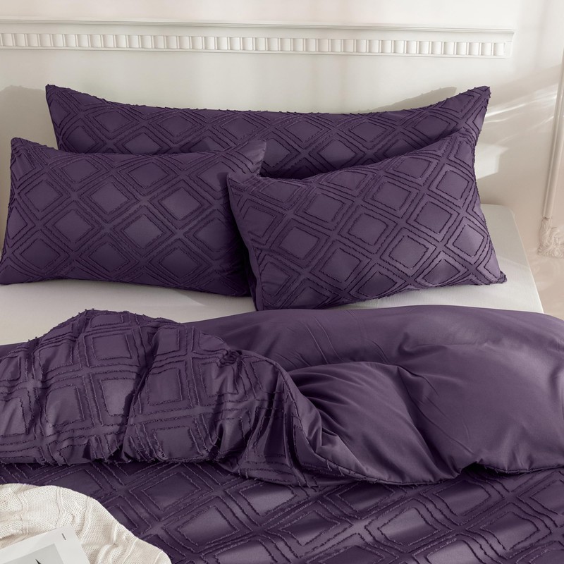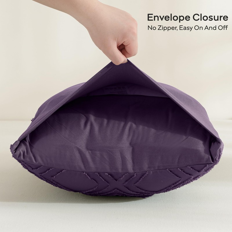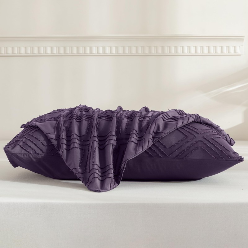 JELLYMONI 2 Pack Purple Pillowcases Standard Size, Soft Microfiber Geometric Tufted Pillow Covers with Envelope Closure (Pillows are not Included)