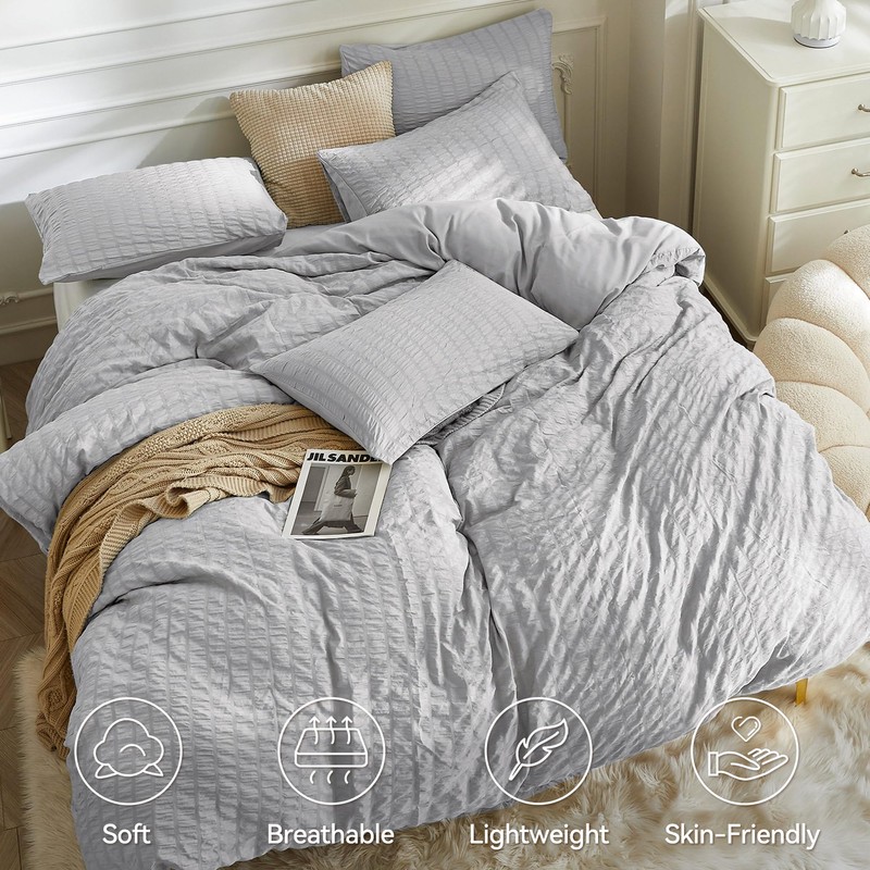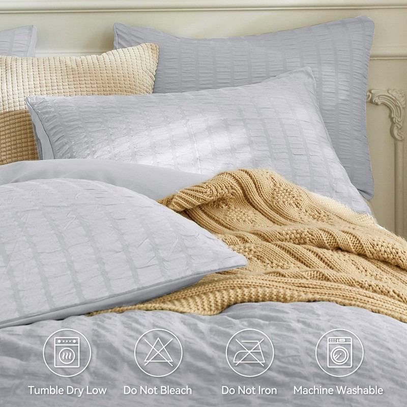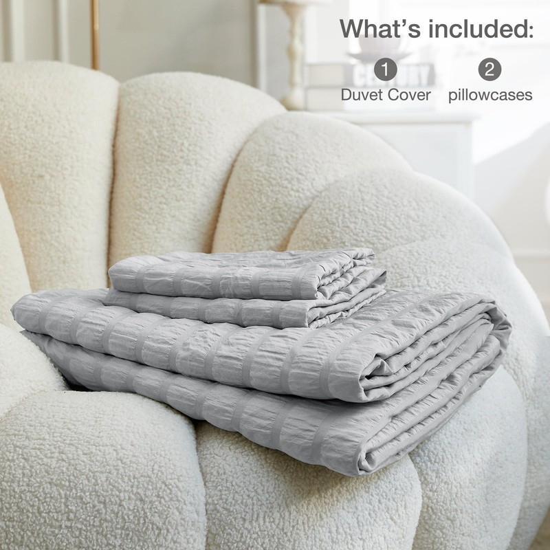- Elegant Seersucker Design: The duvet cover boasts a unique seersucker design with a natural striped pattern, creating a relaxing and casual atmosphere. The wrinkled texture adds sophistication and complements various decor styles, giving your bedding a simple yet refined beauty. The solid color enhances the overall classic and comfortable feel, making it suitable for diverse home aesthetics