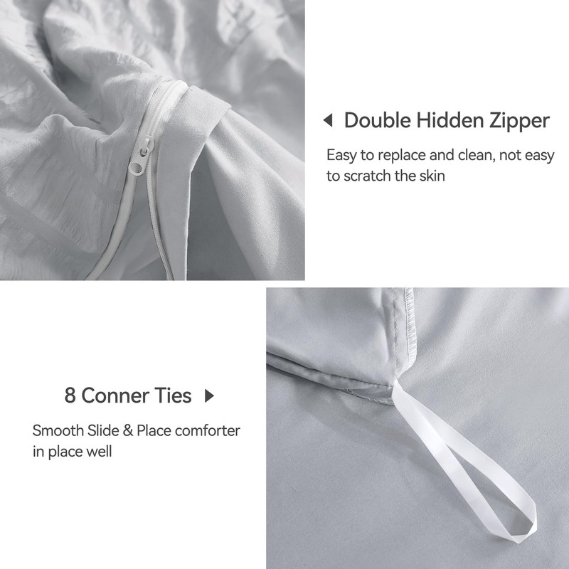 JELLYMONI Light Grey Duvet Cover King Size, 3pcs Washed Microfiber Bedding Set, Soft Breathable Seersucker Duvet Cover Set with Zipper Closure and Corner Ties for All Seasons