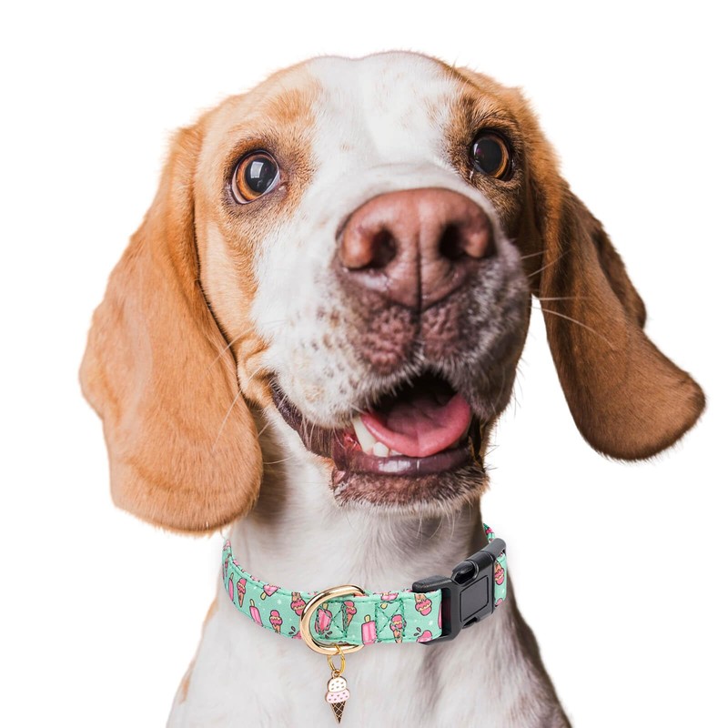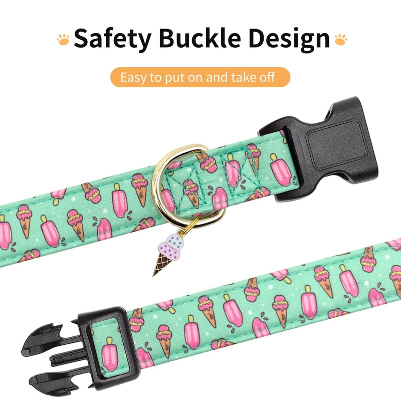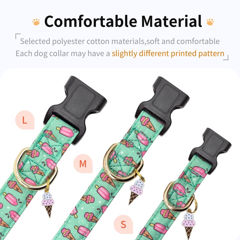 Jelwuion Cotton Dog Collar,Adjustable Cute Puppy Collar with Moon Patterned Design for Small Medium Large Dogs,Soft and Fancy Pet Collar with Safety Buckle for Girl Boy Dogs (Green Ice Cream, Medium)