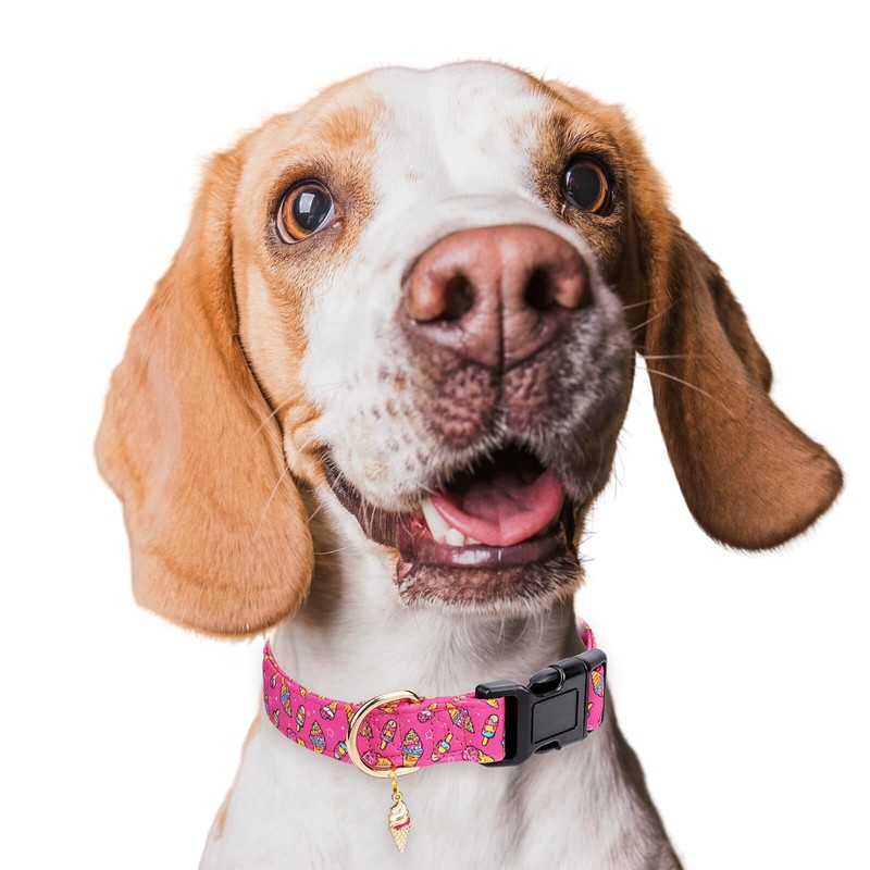 Jelwuion Cotton Dog Collar,Adjustable Cute Puppy Collar with Moon Patterned Design for Small Medium Large Dogs,Soft and Fancy Pet Collar with Safety Buckle for Girl Boy Dogs (Red Ice Cream, Medium)