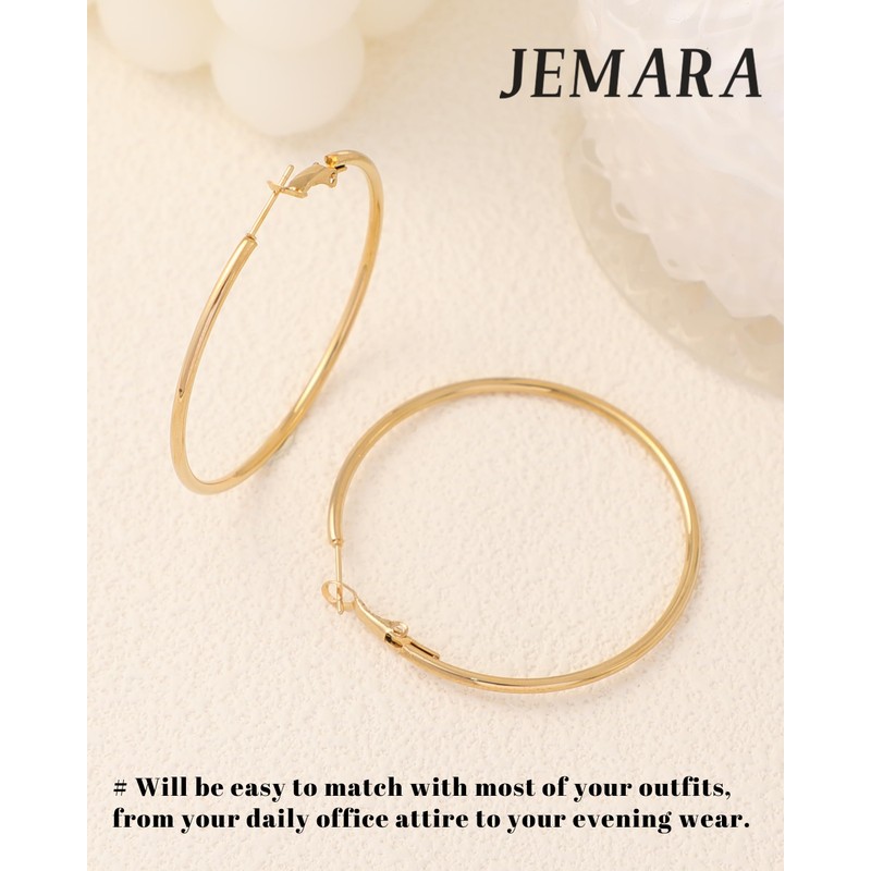 - Bold Style Big Hoop Earrings: JEMARA designs minimalist gold hoops earrings specifically for women; Exquisite craftsmanship ensures the lasting beauty and luster of the silver earrings; The large gold hoops is not easy to deform or break, and the 2mm thin hoop design greatly reduces the weight of the gold hoops, allowing you to easily wear them all day;Transition seamlessly from casual outings to formal events with our stainless steel hoop earrings