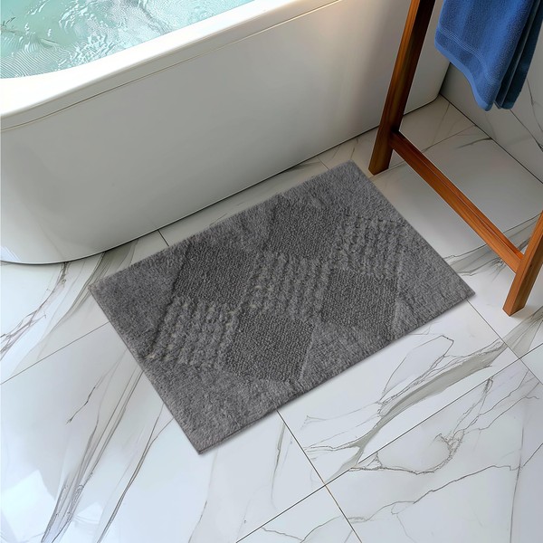 JEMIDI Bath Mat Made of 100% Cotton – Fluffy Bath Mat Grey – 80 x 50 cm – Shower Mat Bathroom Rug – Bath Mat Bath Mat Washable – Bath Mat Shower Rug Non-Slip