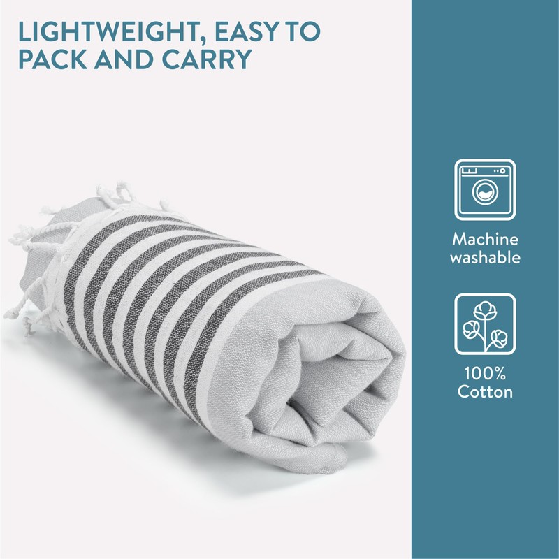 Experience the luxury and convenience of our high-quality, extra-large microfibre beach towels. Perfectly designed for adults, these towels are not just large, they're also incredibly absorbent, lightweight, and quick-drying. Whether you're lounging on the beach or going for a swim, our towels are an essential accessory. Plus our Turkish towels are made from 100% cotton, so they're sure to last while also being incredibly easy for you to care for.