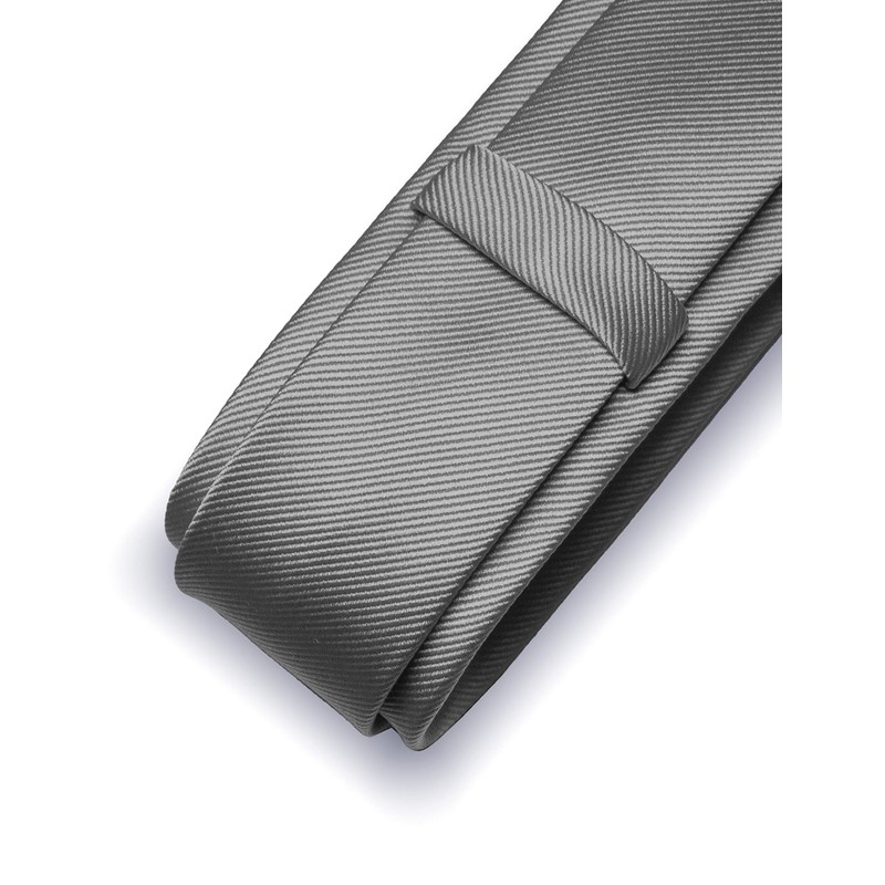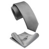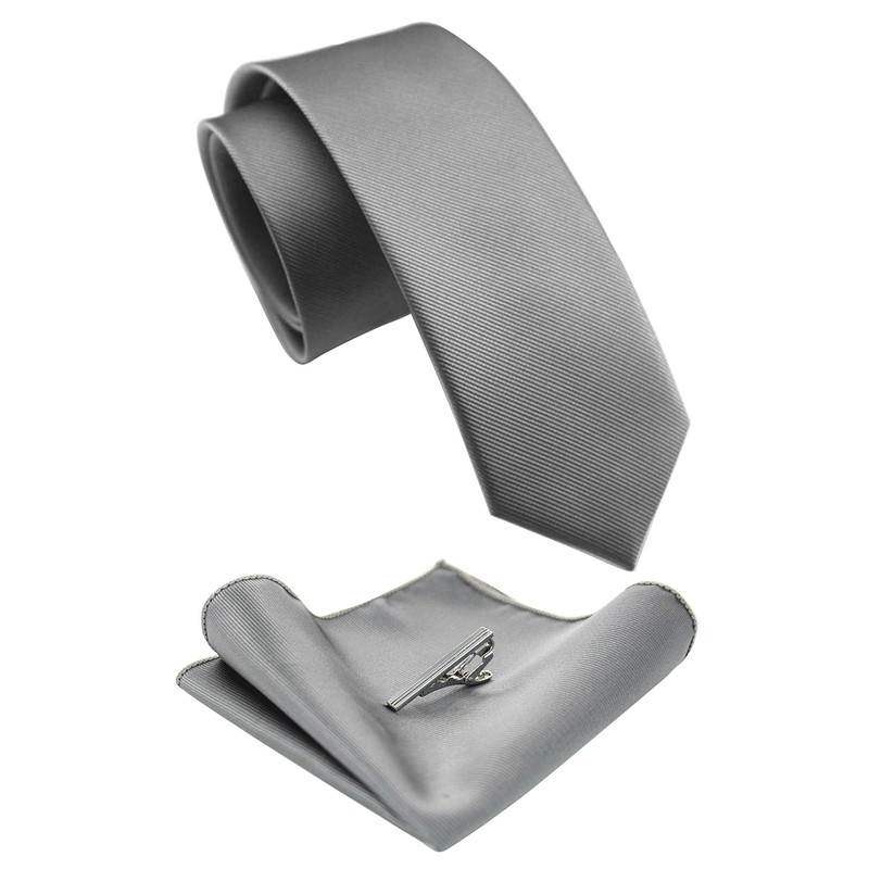 JEMYGINS 2.4" Grey Skinny Tie and Pocket Square with Tie Clip Silk slim Necktie Sets for Men