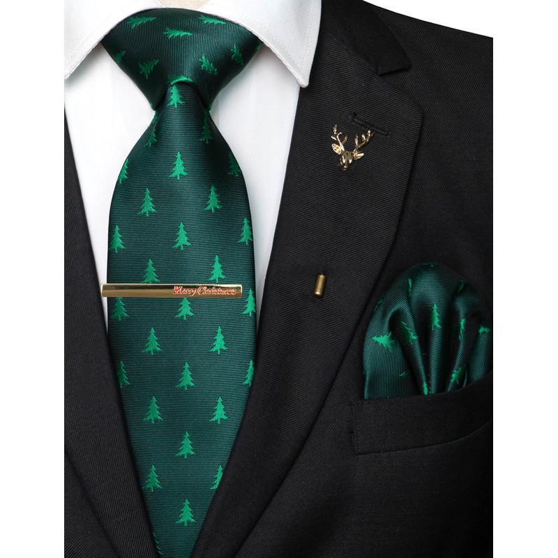 JEMYGINS Men's Christmas Tie Pattern Woven Party Tie & Pocket Square Set, green christmas tree