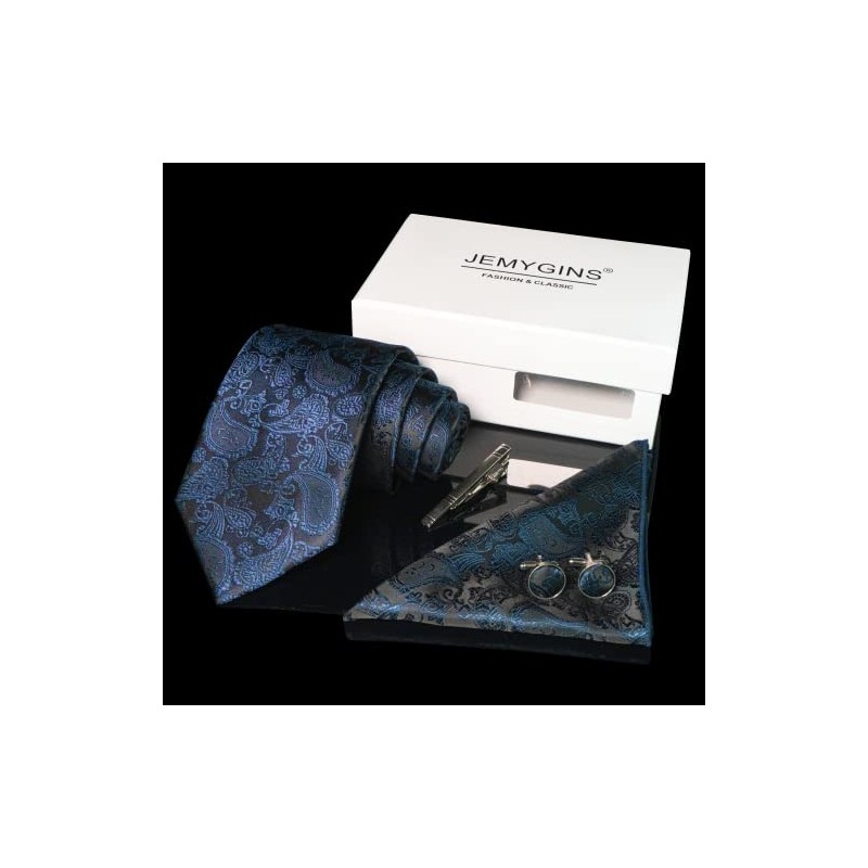 JEMYGINS Men's Necktie, Paisley Pattern, Pin, Cuffs, Button, Chief, Business, Job Hunting, Weddings, School Entrance Ceremonies, Graduations, After-parties, Funerals, Parties, Father's Day, Present,