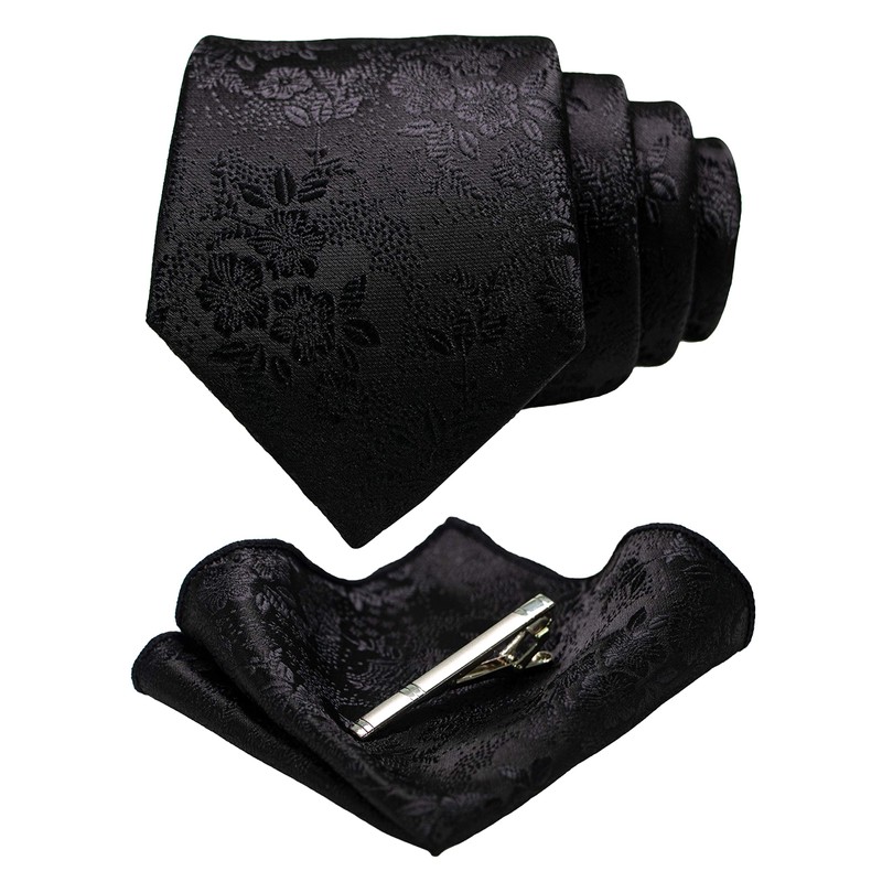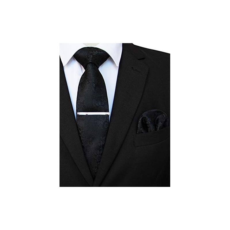 JEMYGINS Mens Floral Ties and Pocket Square Sets with Tie Clip Available, Full Black