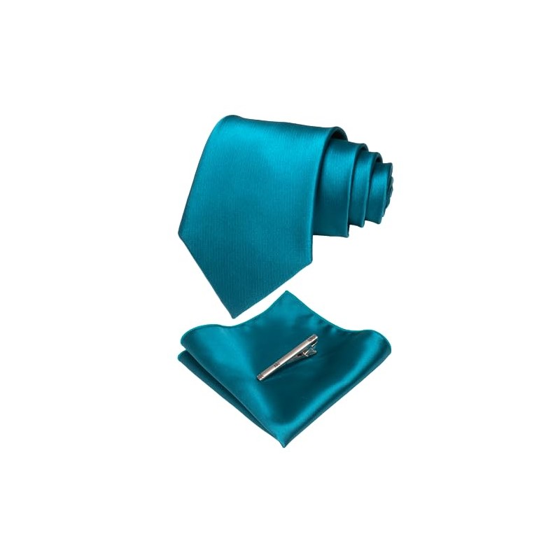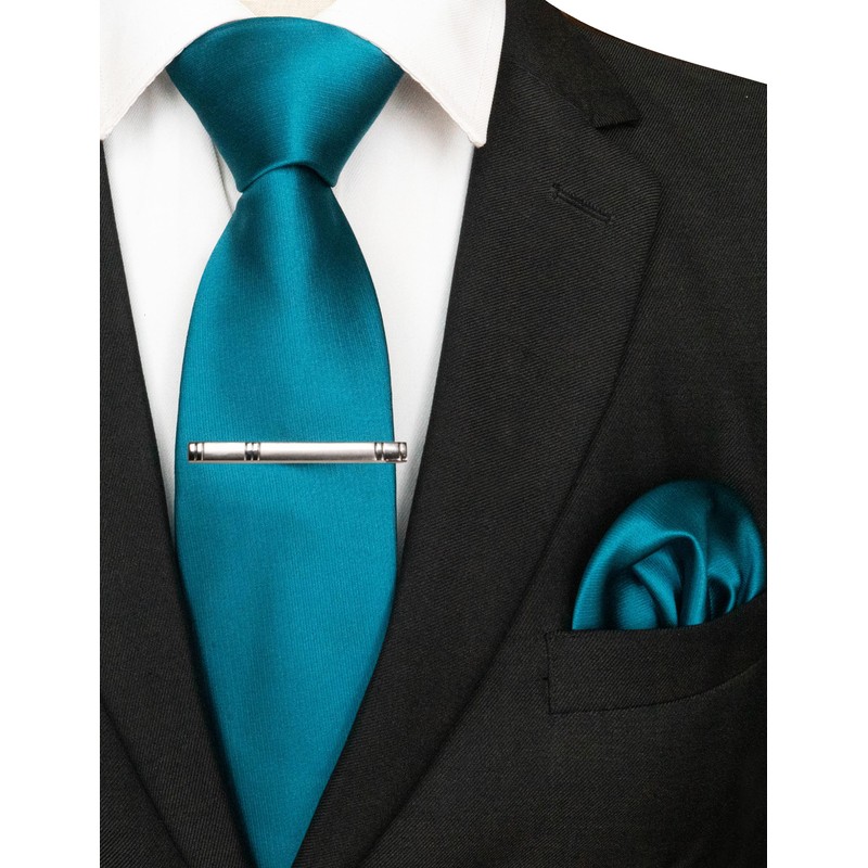 JEMYGINS Mens Formal Peacock Blue Necktie and Pocket Square, Hankerchief and Tie Bar Clip Sets (8)