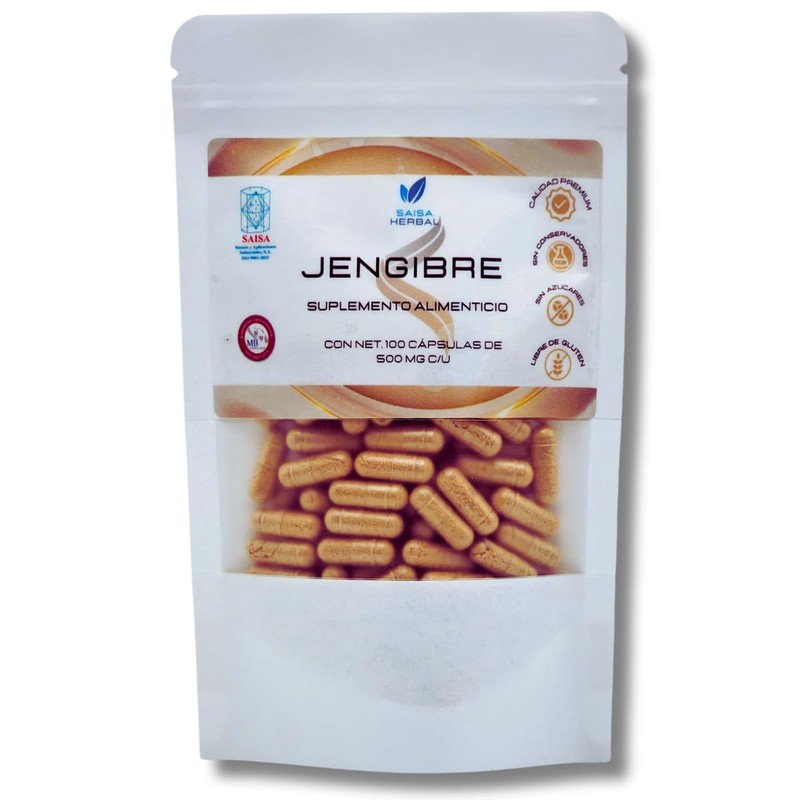 Jengibre 100% Puro Bolsa Con 100 Cápsulas.