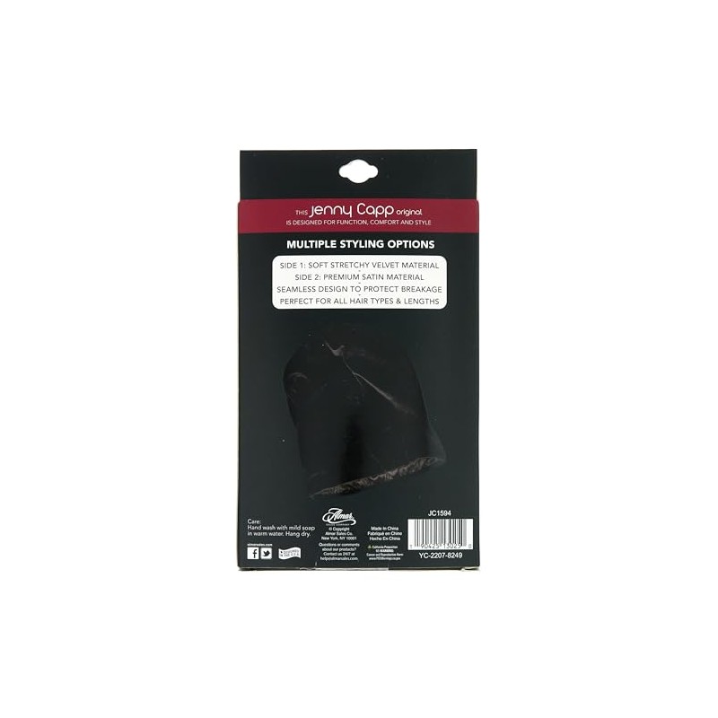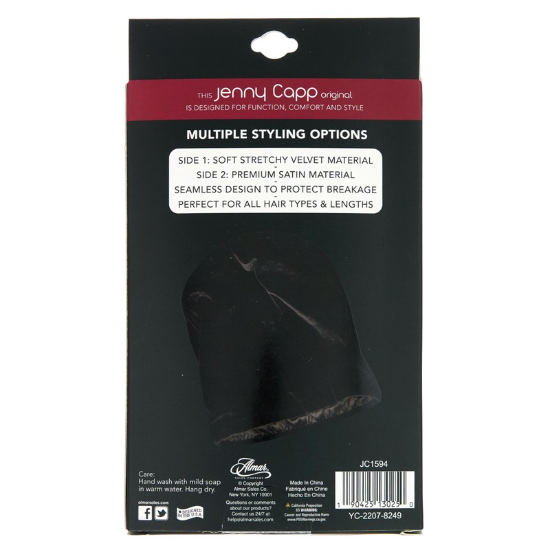 JENNY CAPP Reversible Sleep Cap - Velvet & Satin Sleep Cap, Black, Medium-Large