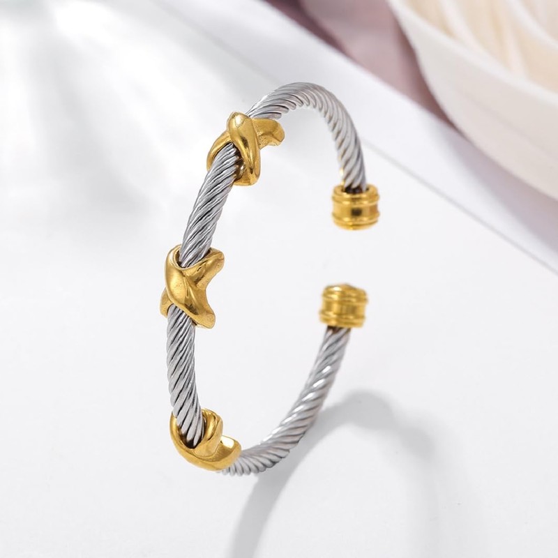 Jeolory Adjustable Twist Stainless Steel Cable Wire 14K Gold Plated Endless Cycle Charm Bracelets Friendship Open Bangle Wrist Cuff for Women Men