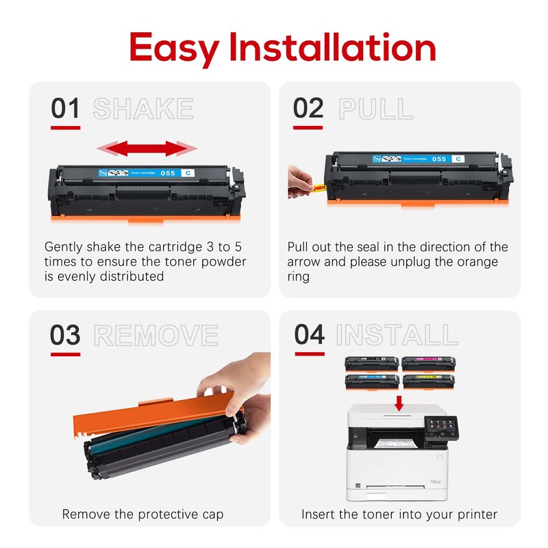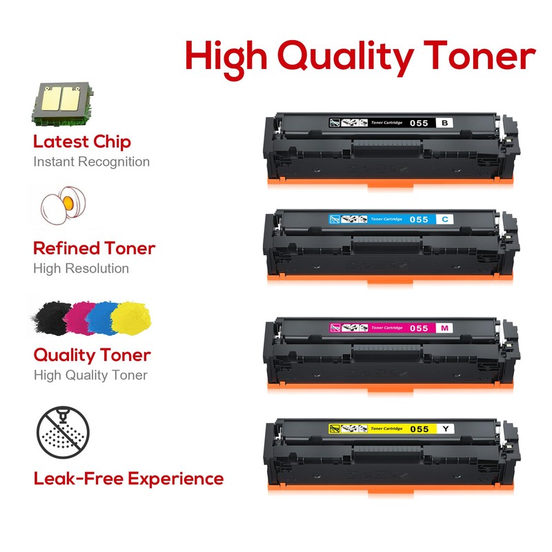 - Reliable Printing Quality: Featuring advanced chip technology, ensures seamless compatibility, vibrant colors, and leak-free performance for Canon 055 toner; Ideal for homes, offices, and commercial use, it delivers professional-quality prints
