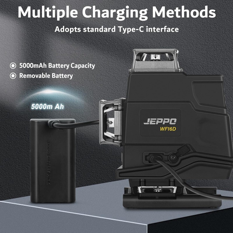 JEPPO Laser Level 360 Self Leveling,4D 4x360° Green 16 Cross Line Lazer Leveler Tool for construction and Tiling Floor,APP Remote Control,with 5000mAh Rechargeable Battery,Magnetic Rotating Stand
