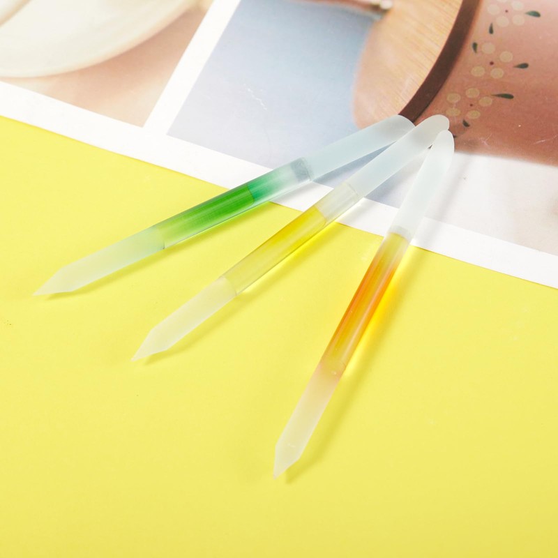 JERCLITY 3 Pieces Double-Ended Glass Nail Files Cuticle Pusher Cuticle Stick Set Nano-Frosted Nail Polished Crystal Glass Rod Manicure Pedicure Pusher Tools(Orange/Yellow/Green)