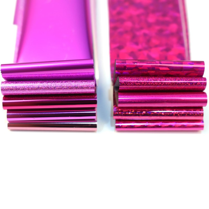 JERCLITY Pink Nail Foil Transfer Sticker Kit - 10 Rolls Solid Color Sheets for Nail Art Decals and Wraps