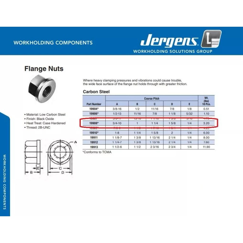 JERGENS 19908 3/4-10, 1-5/8" Dia Workholding Heavy Case Hard, Blk Ox. Flange Nut