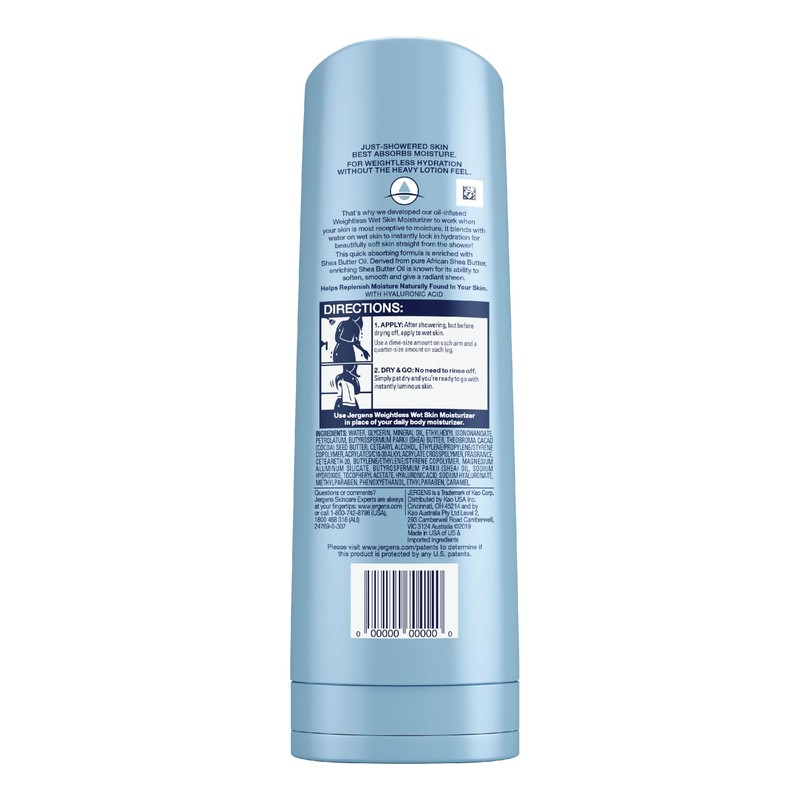 Get perfectly hydrated skin without the heavy lotion feel. Jergens Wet Skin Body Moisturizer with Enriching Shea Oil locks in hydration at skin's peak moisture moment - when you're in the shower. Use this enriching moisturizer after showering and enjoy luxuriously soft skin. In shower lotion for dry and extra dry skin is formulated to soothe and refresh tired, rough skin. Shea Butter infused moisturizer locks in hydration and smooths skin. Non-sticky formula goes on smooth for enhanced sheen and luminosity. Satisfaction Guaranteed. Limitations may apply.