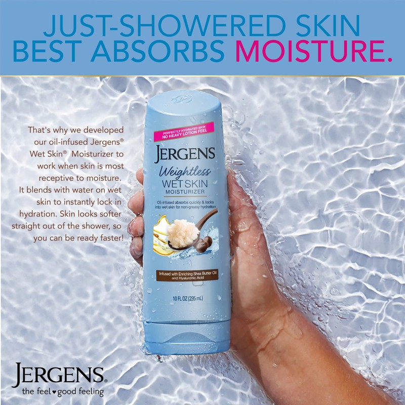 Jergens Wet Skin Body Moisturizer with Shea Butter Oil, Pure Shea Butter In Shower Bod Lotion, Moisturizer for Dry Skin, Fast-Absorbing, Non-Sticky, Dermatologist Tested, 10 Oz