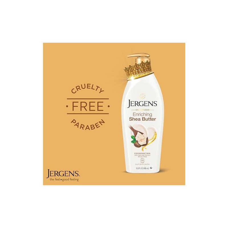 Jergens Shea Butter Body Lotion, Deep Conditioning Moisturizer, Hydration for Dry to Very Dry Skin, with Pure Shea Butter, 3X More Radiant Skin, Dermatologist Tested, 16.8 oz
