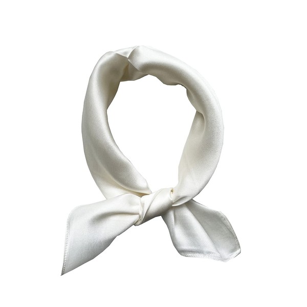 JERLA Women's Men's Small Square 100% Real Mulberry Silk satin Scarfs Hair head face scarf 21" x 21" (Pure cream white)