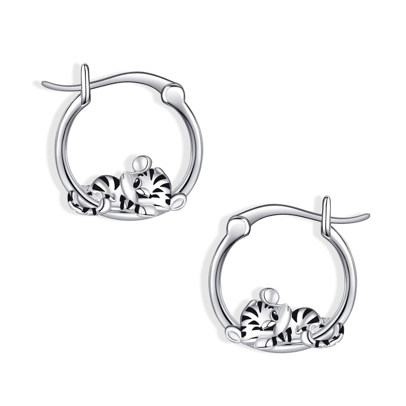 JERWLI Tiger Earrings for Women 925 Sterling Silver Cute Tiger Hoop Earrings Tiger Jewellery Gifts for Women, One size, Sterling Silver, No Gemstone