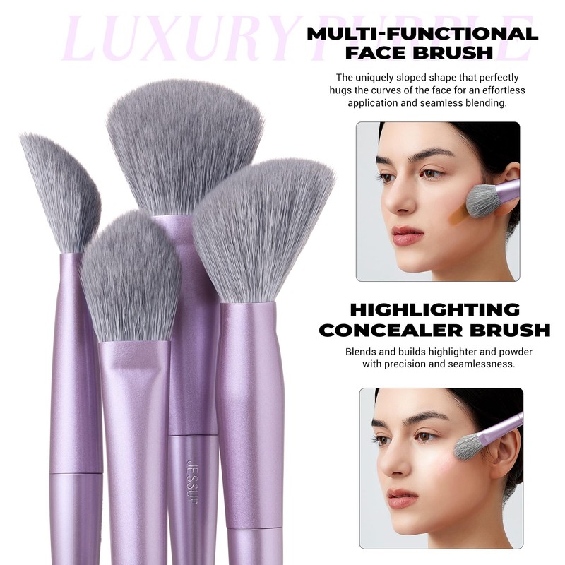 - 5pcs Luxury Purple Face Brush Set: Discover the epitome of sophistication with the Jessup 5-piece face brush set. Featuring JESSUP's signature curved design and chic small-waist handles, each vegan makeup brush ensures precise application of foundation, blush, contour, highlight, and powder. The enchanting dream purple finish elevates your makeup ritual with artistic precision and refined allure.