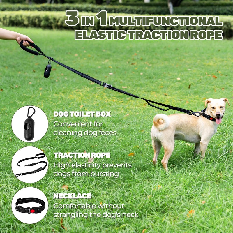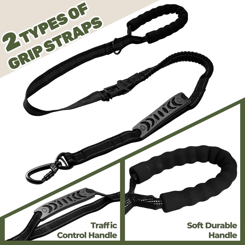 • SHOCK-ABSORBING COMFORT: Bungee elastic layer + dual handles (foam grip & anti-slip texture) absorb 70% of pulling force, protecting hands and wrists during walks