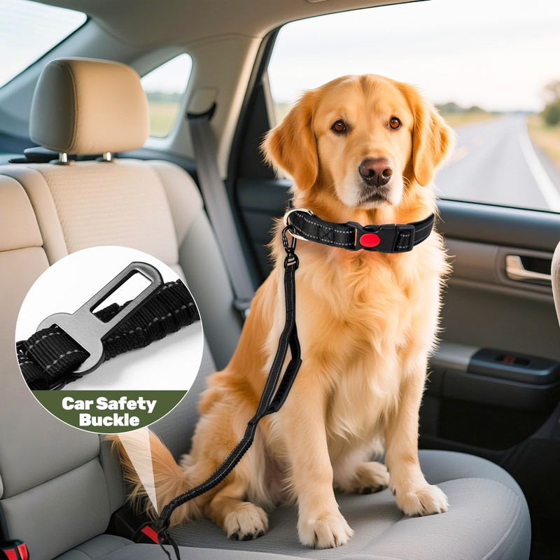 • CAR-SAFE TRAVEL READY: Integrated vehicle seatbelt clip locks directly into car buckle. Secures dogs in backseat during trips, no more unsafe roaming