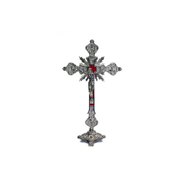 Jesus Christ on Cross Silver Tone Standing Crucifix with Base, 12 Inch