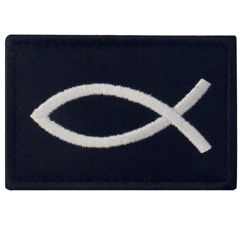 Jesus Fish Ichthys Patch Embroidered Morale Applique Fastener Hook & Loop Emblem - White & Black