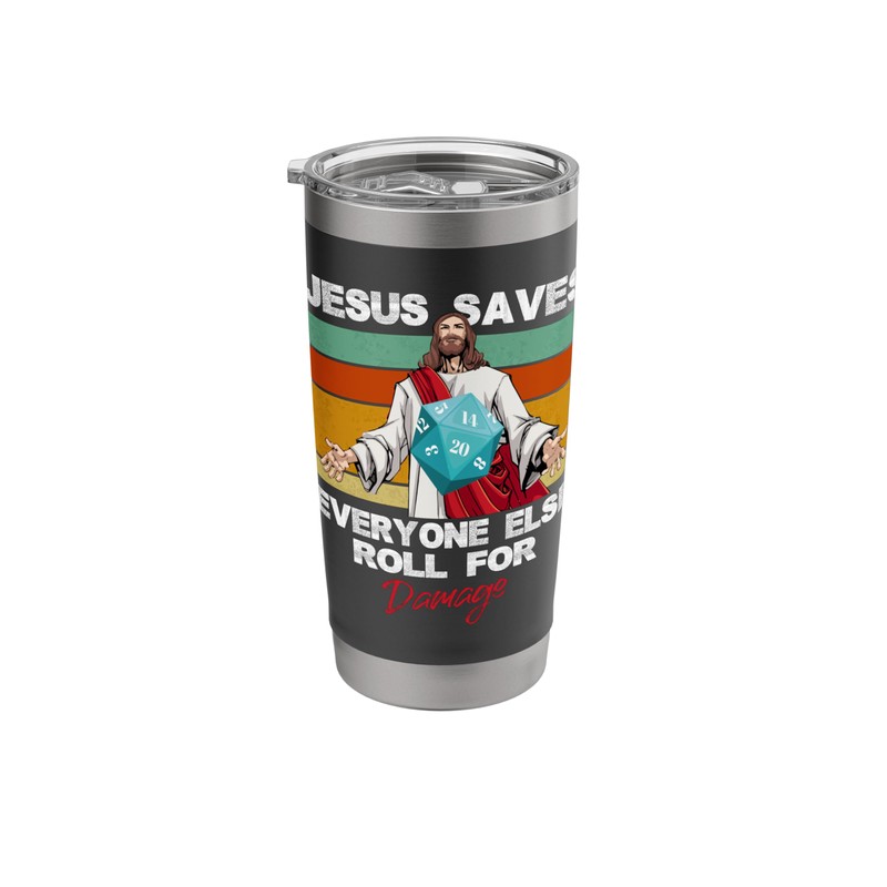 Jesus Saves Everyone Else Roll For Damage Christian Saying Stainless Steel Insulated Tumbler