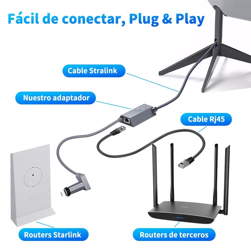 - Fácil configuración plug-and-play: Adaptador para Starlink no requiere instalación de controladores y está listo para usar en cuanto se enchufa. Con la intuitiva interfaz de usuario de Starlink, la configuración se completa rápidamente e incluso los usuarios sin experiencia técnica pueden instalarlo y configurarlo fácilmente.