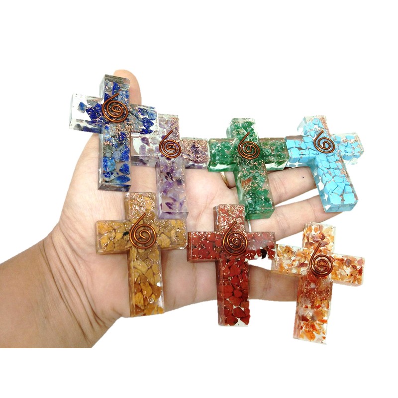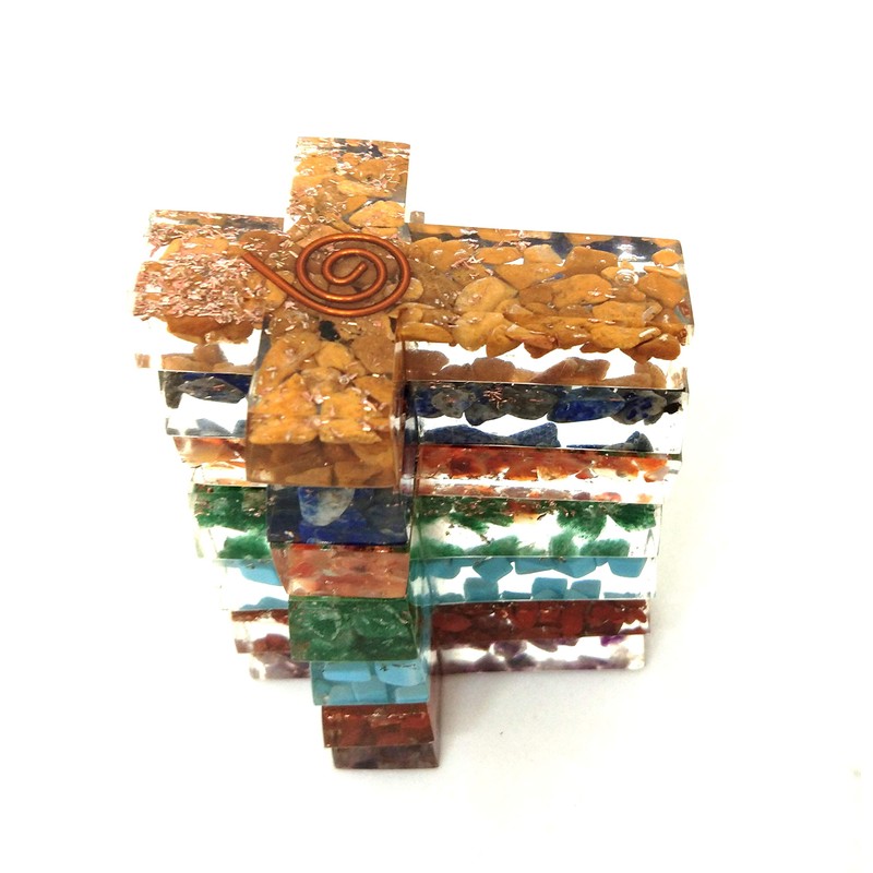 • JET A++ Chakra Cross Orgone Set. The 7 Chakra Stones are Amethyst, Lapis Lazuli, Turquoise , Green Mica, Yellow Jasper, Red Aventurine / Carnelian and Red Jasper. Orgone is basically life force vitality energy that fills your body and is utilized almost like free energy, providing energy to your body, mind, and spirit. The whole human body generates an energy field, often called an "aura".